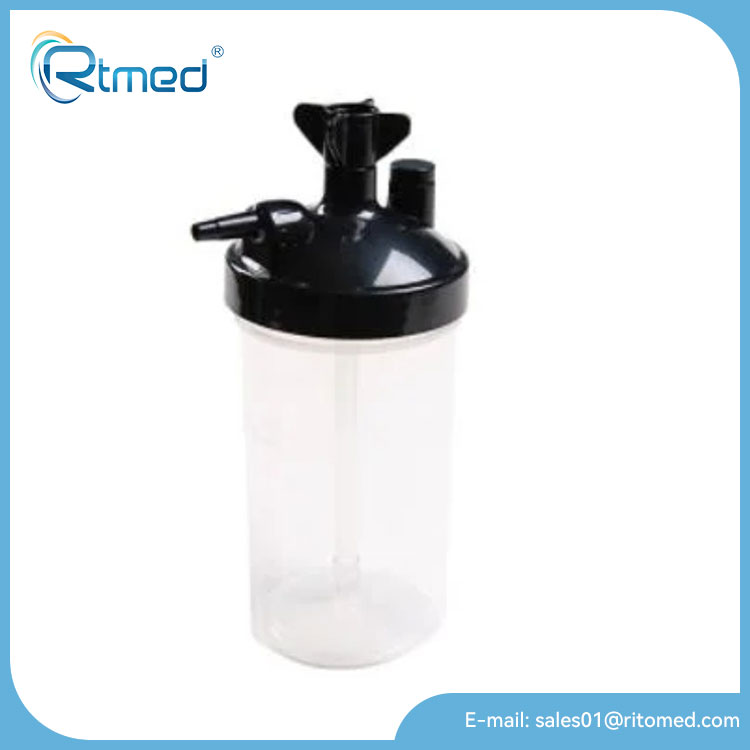 เครื่องทำความชื้น RTMED ขนาด 250 มล. นี้ใช้เพื่อให้ออกซิเจนที่มีความชื้นแก่ผู้ป่วยทั้งในโรงพยาบาลหรือที่บ้าน ตัวกรองที่ปลายท่อทางเข้าจะทำให้เกิดฟองก๊าซขนาดเล็กมาก ซึ่งจะเป็นการเพิ่มพื้นผิวสัมผัสและให้ความชื้นสูงสุดที่ฟองอากาศรับไว้ ในขณะเดียวกัน ฟองอากาศเล็กๆ ก็ส่งเสียงรบกวนต่ำมาก ไม่เหมือนฟองอากาศขนาดใหญ่ช่วยให้ผู้ป่วยได้พักผ่อน ขวดมาพร้อมกับขั้วต่อที่ช่วยให้สามารถติดตั้งเข้ากับช่องจ่ายไฟของเครื่องวัดการไหลของออกซิเจนได้