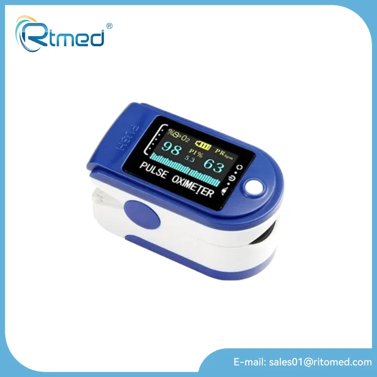 เครื่องวัดออกซิเจนในเลือดแบบปลายนิ้ว RTMED นี้เป็นอุปกรณ์ทางการแพทย์แบบพกพาขนาดเล็กที่ติดไว้บนปลายนิ้วเพื่อวัดความอิ่มตัวของออกซิเจน (SpO2) และอัตราชีพจรในเลือด ทำงานโดยการส่องแสงผ่านปลายนิ้วและวัดปริมาณแสงที่ถูกดูดกลืน ซึ่งระบุระดับฮีโมโกลบินที่ได้รับออกซิเจน จากนั้นอุปกรณ์จะแสดงเปอร์เซ็นต์ SpO2 และอัตราชีพจรบนหน้าจอ