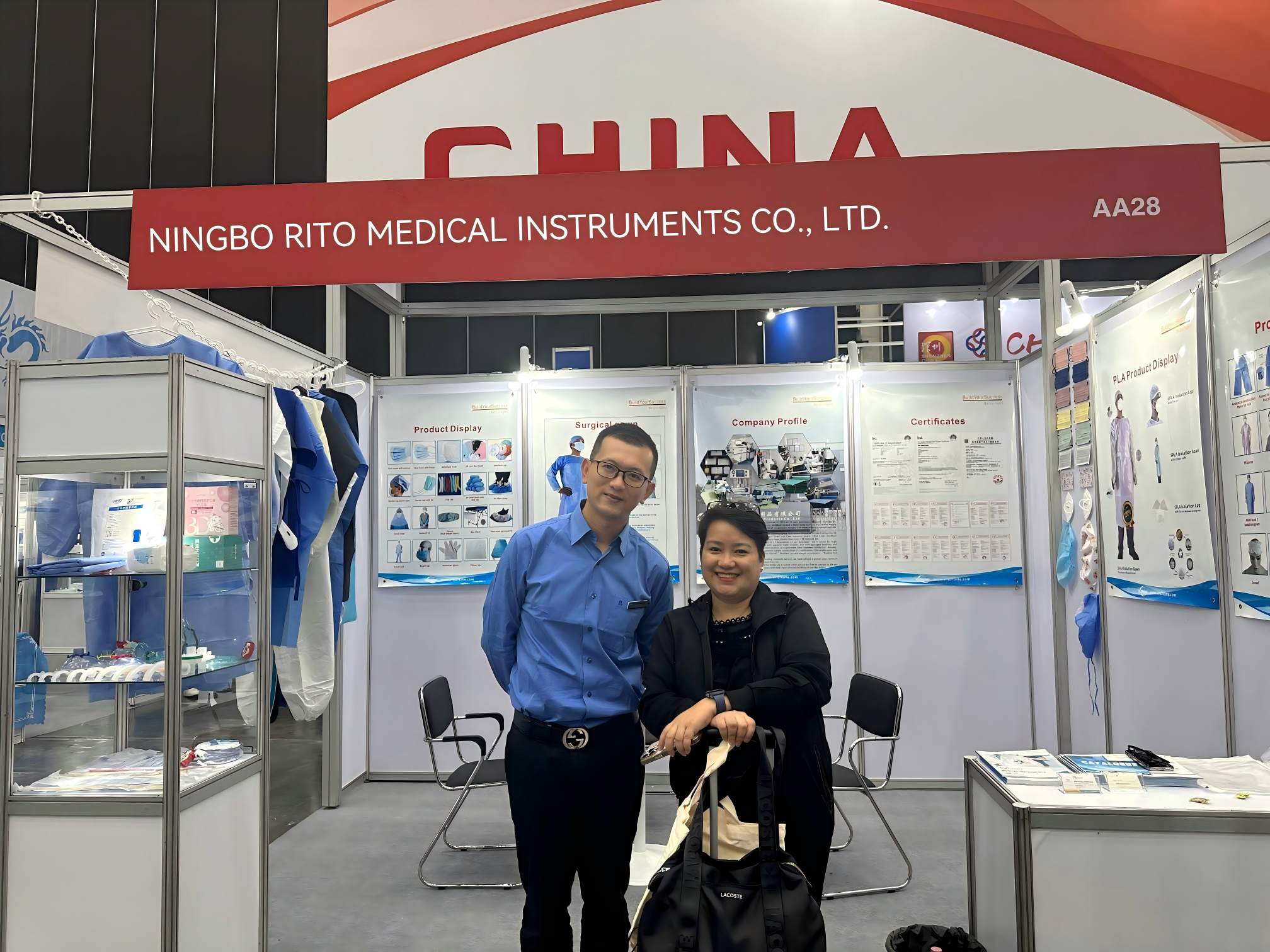 ในครั้งนี้ Ningbo Ritomed นำเสนอผลิตภัณฑ์ไม่ทอและผลิตภัณฑ์ทางเดินหายใจที่เป็นประโยชน์หลักของเรา รวมถึงหน้ากากผ่าตัดแบบใช้แล้วทิ้ง ชุดแยก ชุดผ่าตัด หน้ากากออกซิเจน หน้ากากเครื่องพ่นยา...